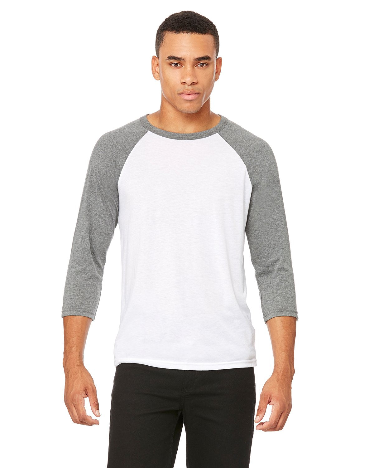 Bella + Canvas Unisex 3/4-Sleeve Baseball T-Shirt 3200 White/ Deep Hthr