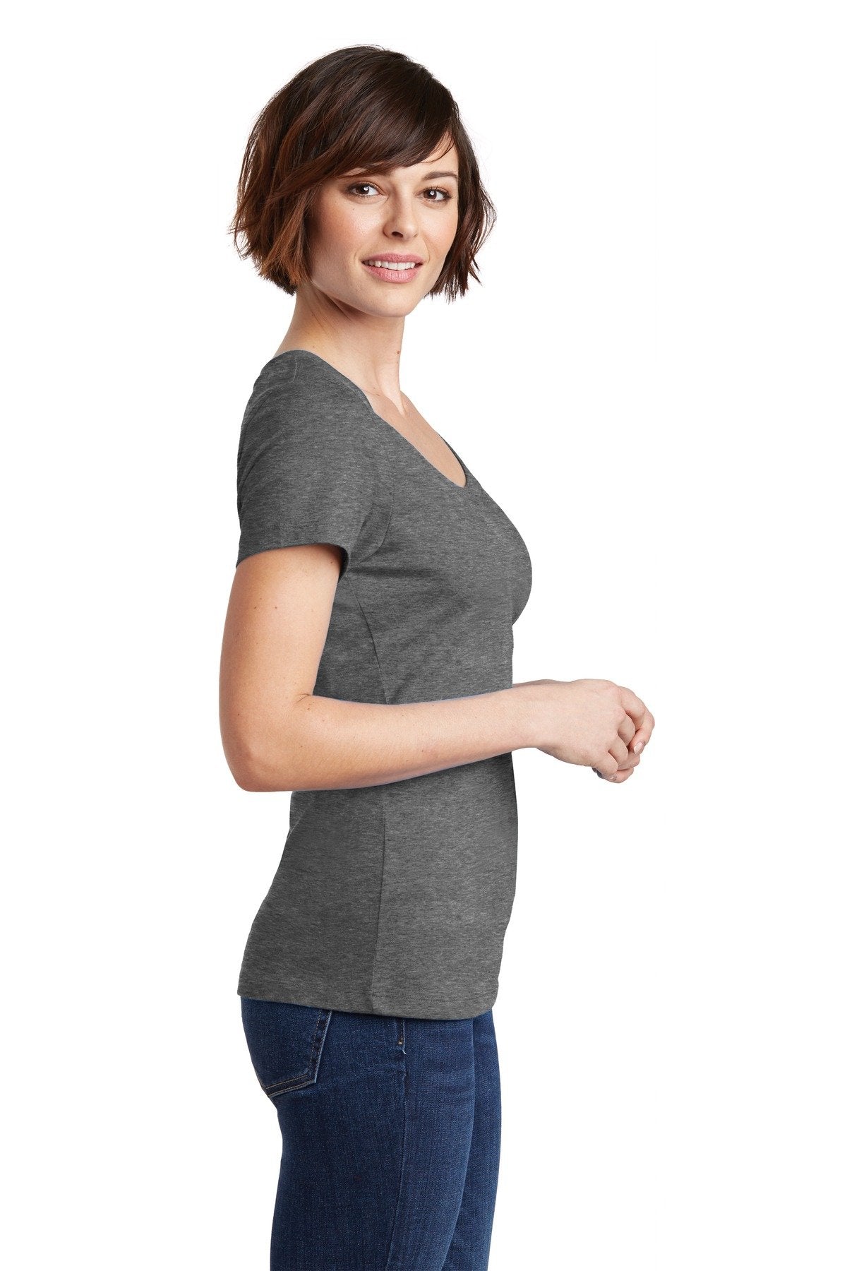 District Made Ladies Perfect Weight Scoop Tee DM106L Heathered Nickel