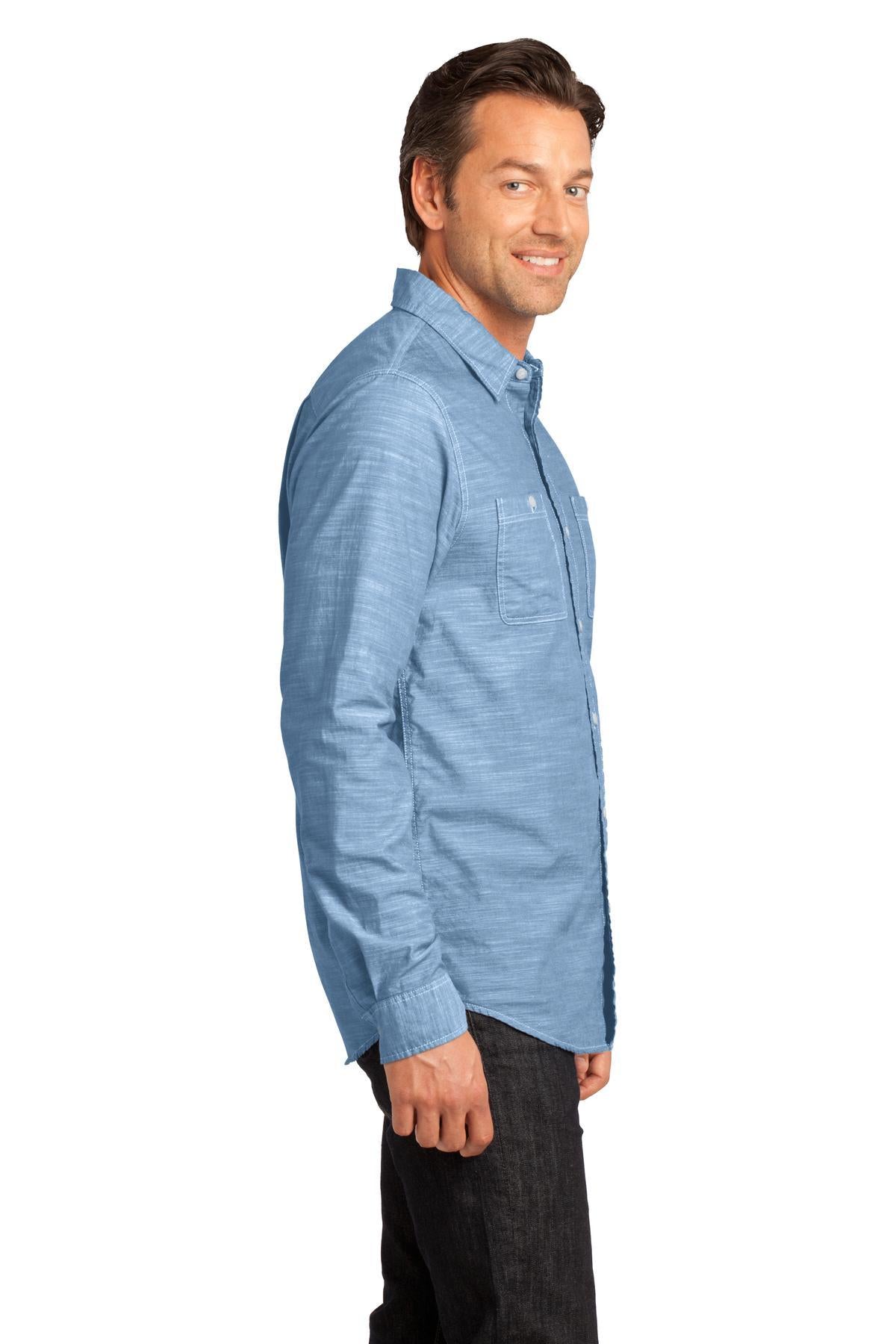 District Made - Mens Long Sleeve Washed Woven Shirt DM3800 Light Blue