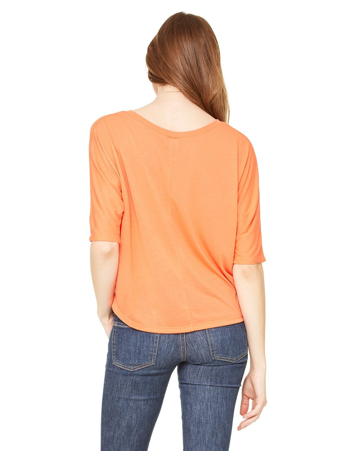 Bella + Canvas Ladies Flowy Boxy Half-Sleeve V-Neck T-Shirt 8825 Coral