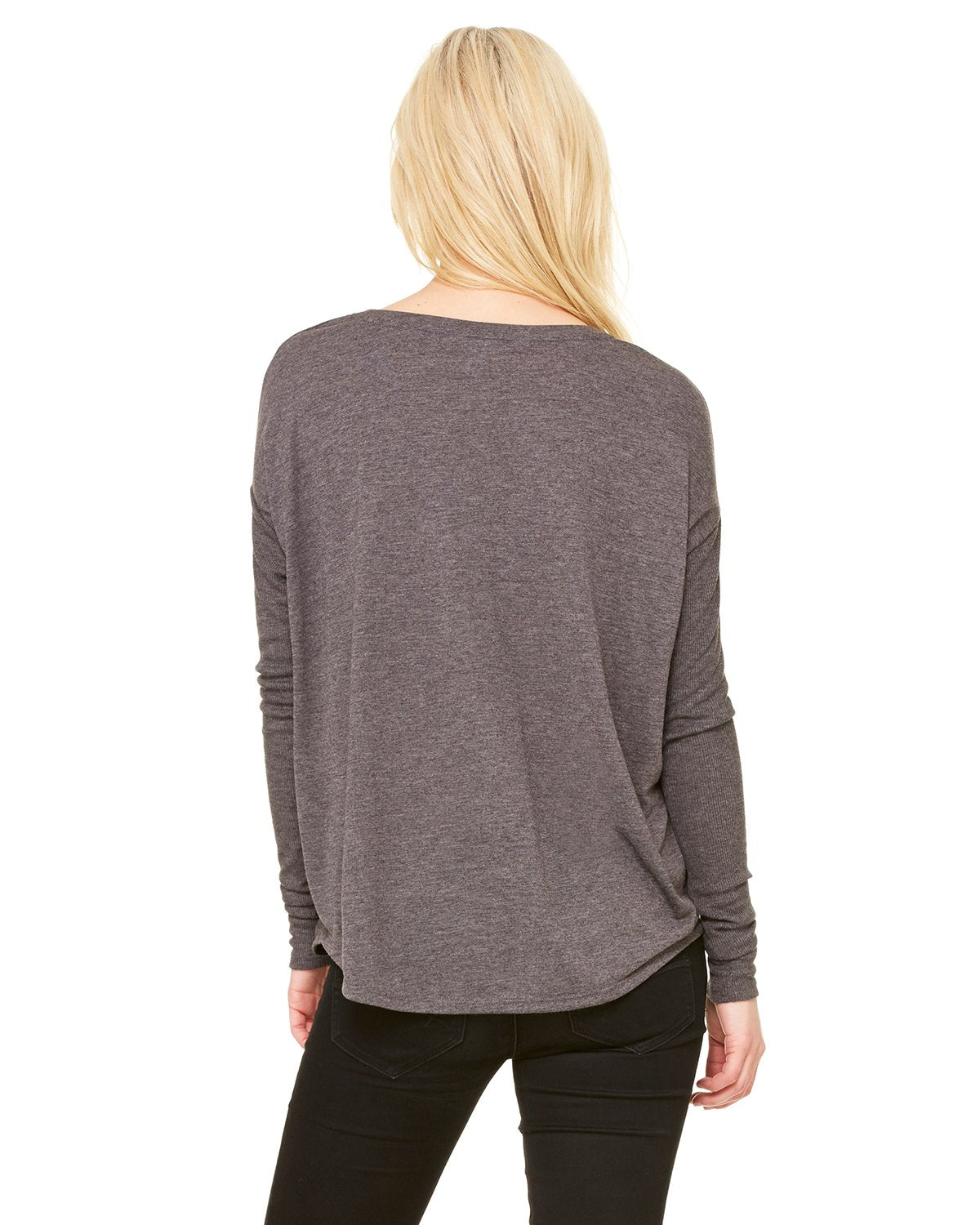 Bella + Canvas Ladies Flowy Long Sleeve T-Shirt With 2X1 Sleeves 8852 Drk Grey Heather