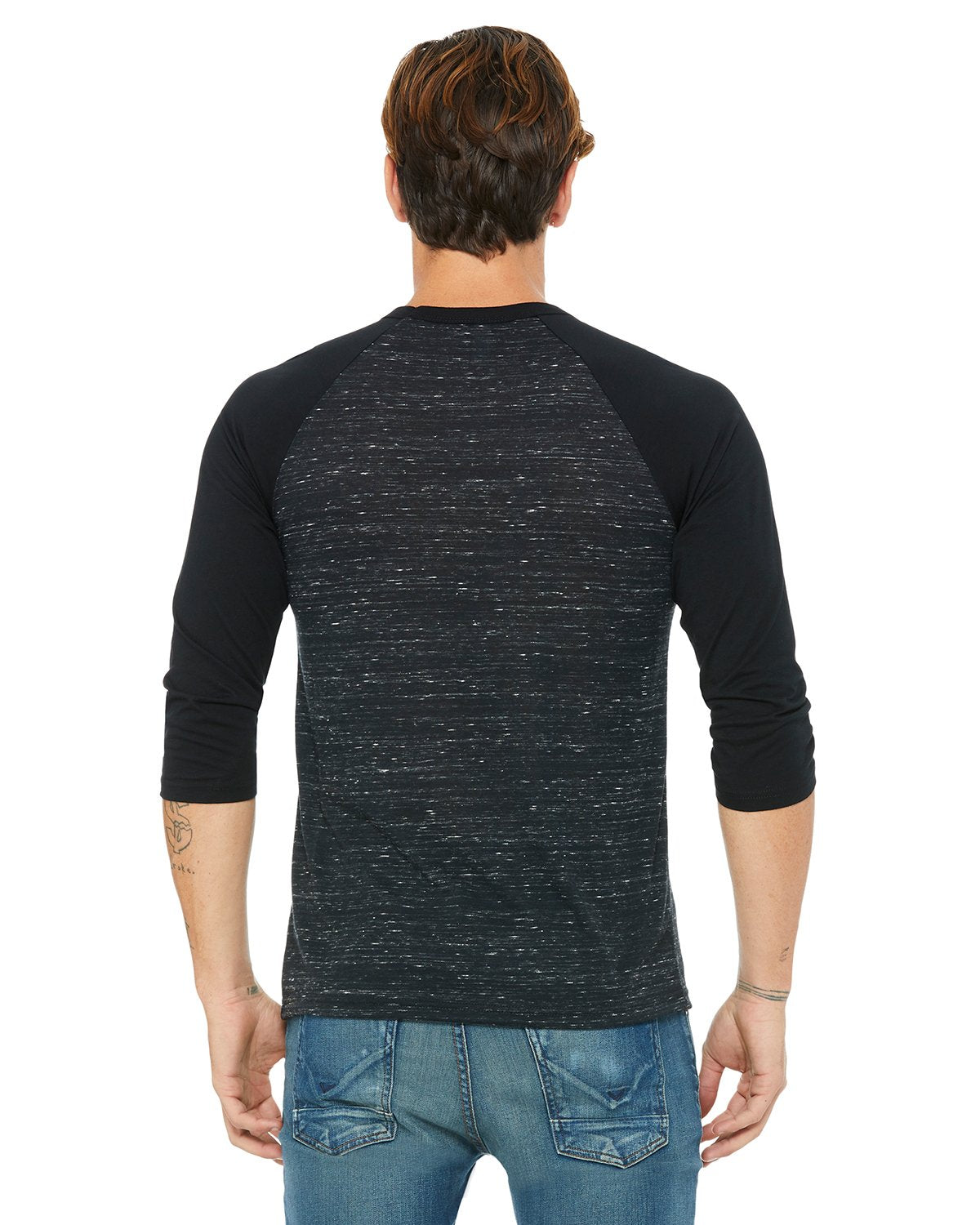 Bella + Canvas Unisex 3/4-Sleeve Baseball T-Shirt 3200 Blck Mrble/ Blck