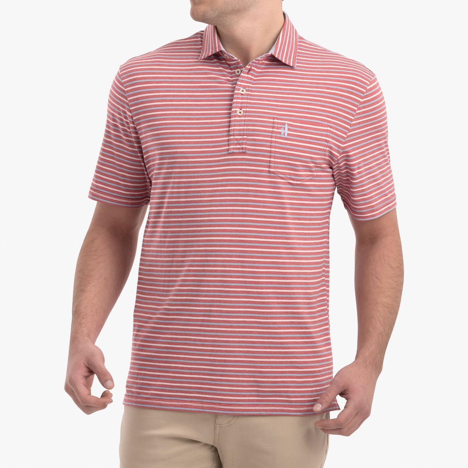 Johnnie O The Original 4 Button Polo Oakmont Stripe JMPO2360 Malibu Red