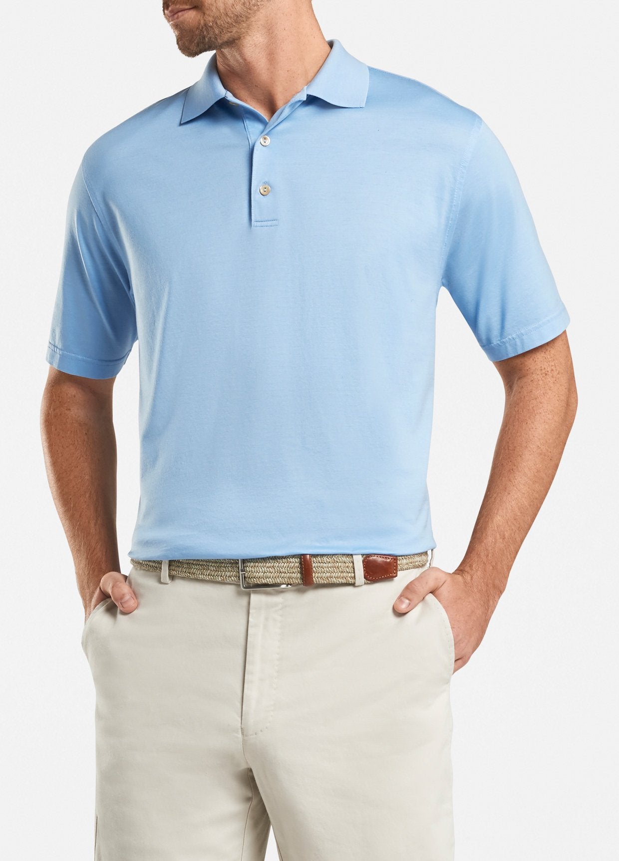 Peter Millar Mens Solid Mercerized Cotton Polo ME0K00 Cottage Blue