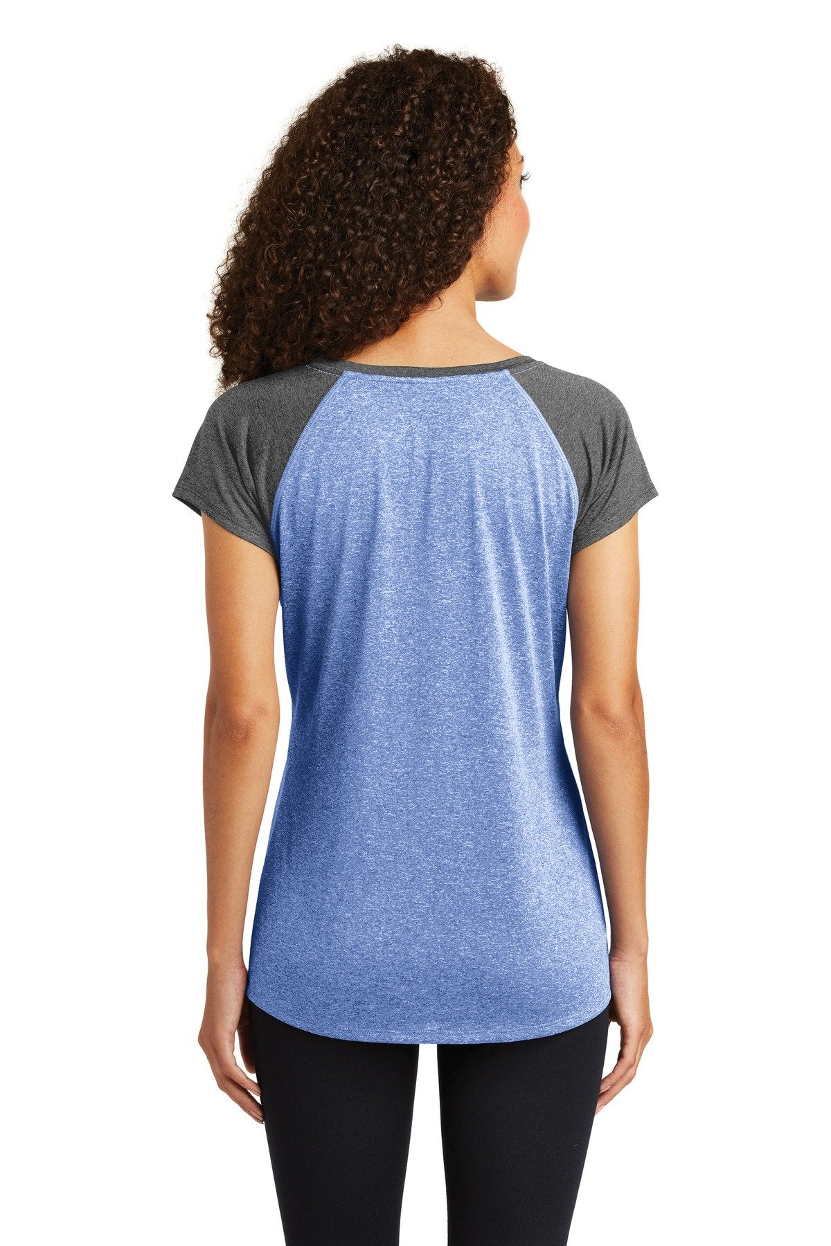 Sport-Tek Ladies Heather-On-Heather Contender Scoop Neck Tee LST362 True Royal Heather/Graphite Heather