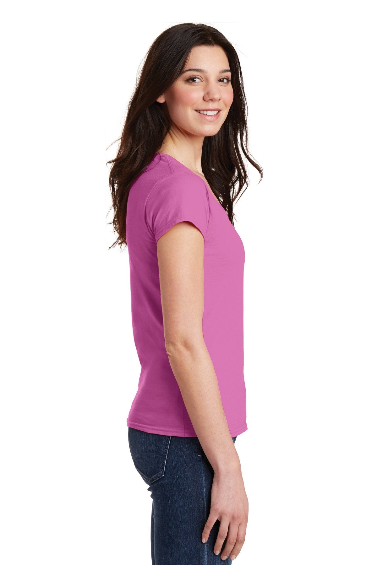 Gildan Softstyle Junior Fit V Neck T Shirt 64V00L Azalea