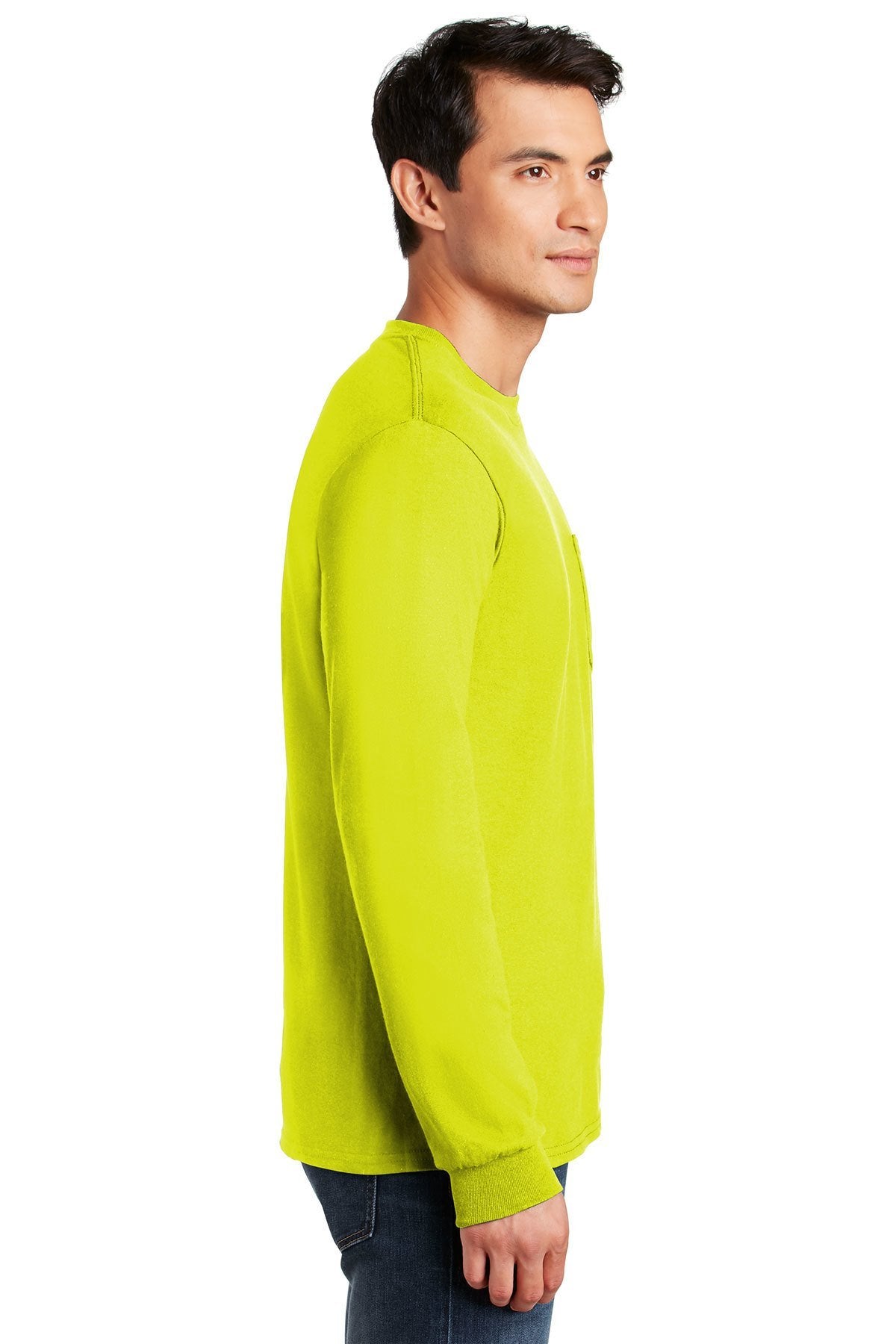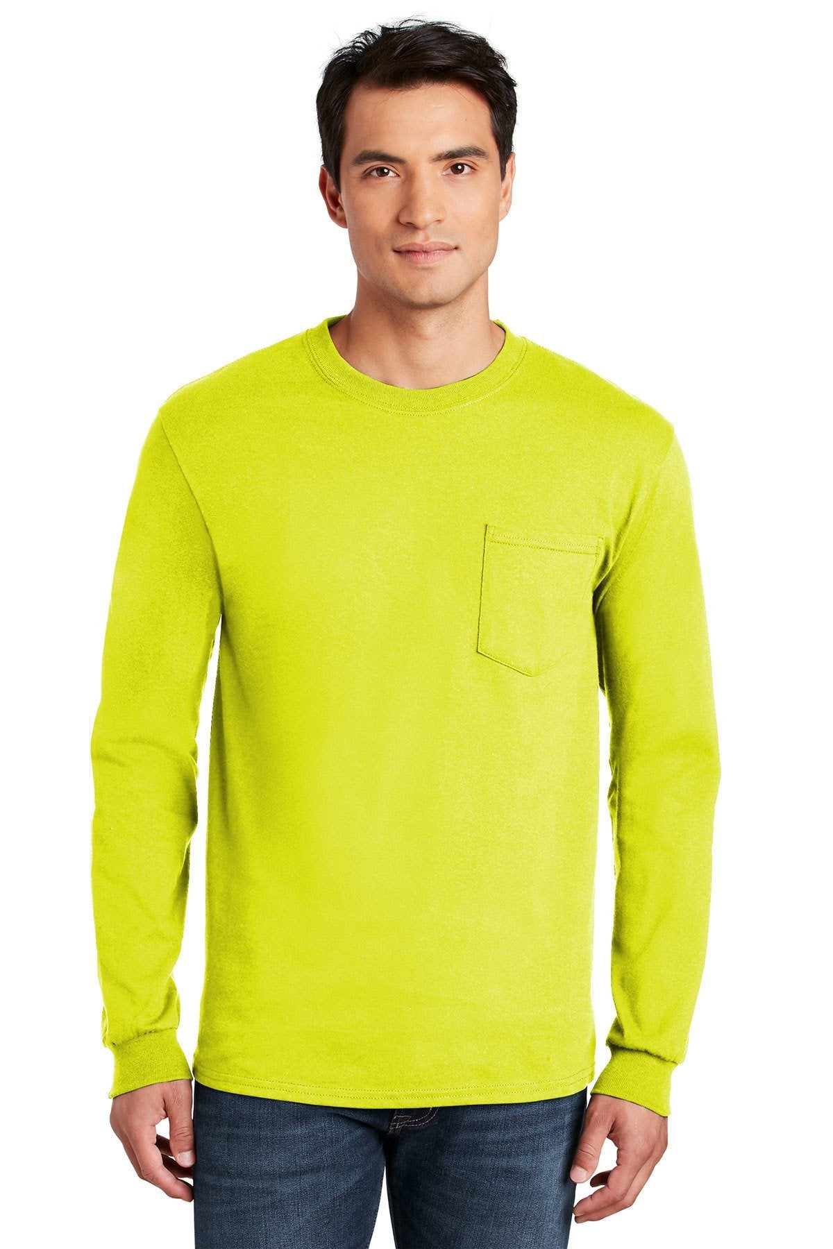 Gildan Ultra Cotton Long Sleeve T Shirt With Pocket 2410 Safety Green