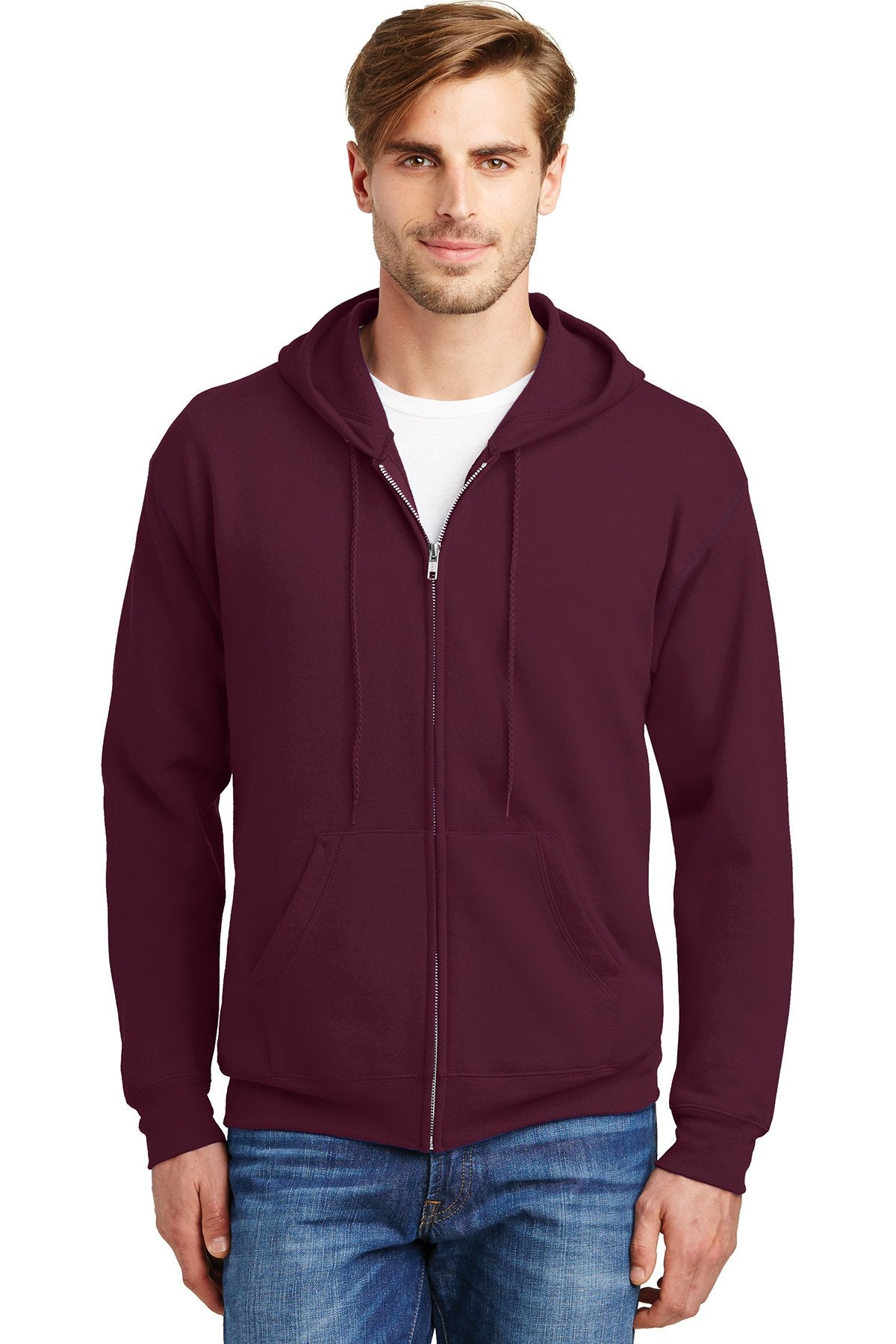 Hanes Ecosmart Full Zip Hooded Sweatshirt P180 Maroon