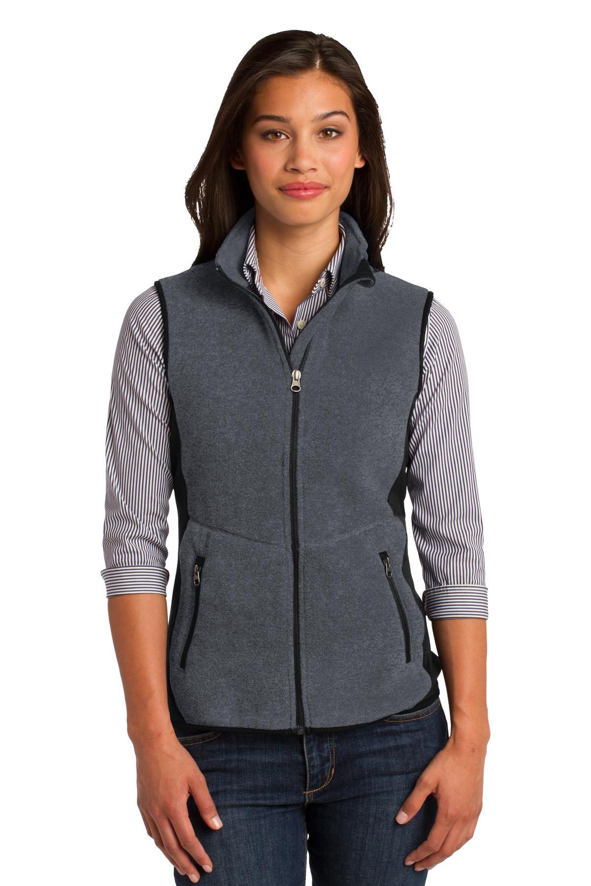 Port Authority Ladies R-Tek Pro Fleece Full-Zip Vest L228 Charcoal Heather/ Black