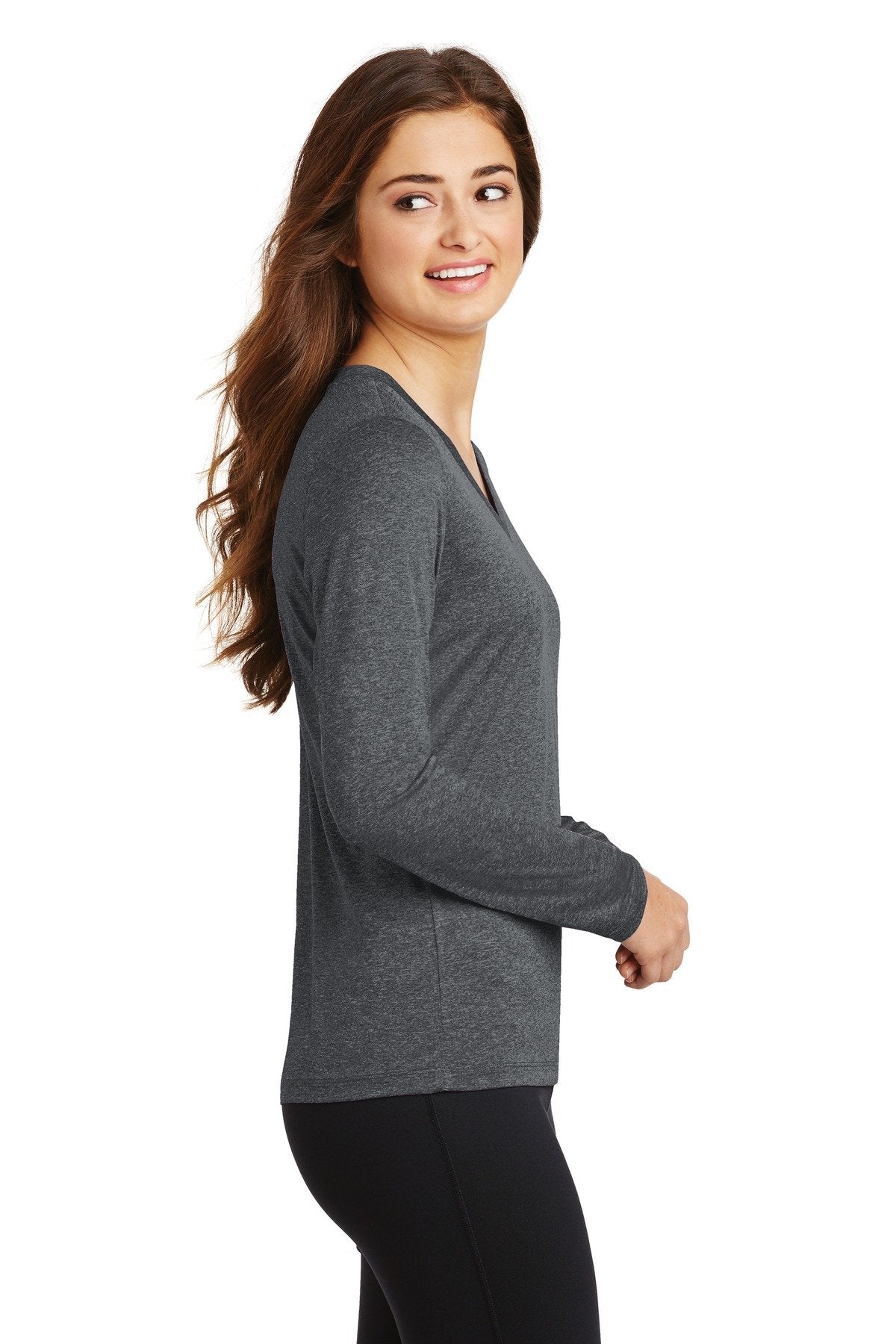 Sport-Tek Ladies Long Sleeve Heather Contender V-Neck Tee LST360LS Graphite Heather