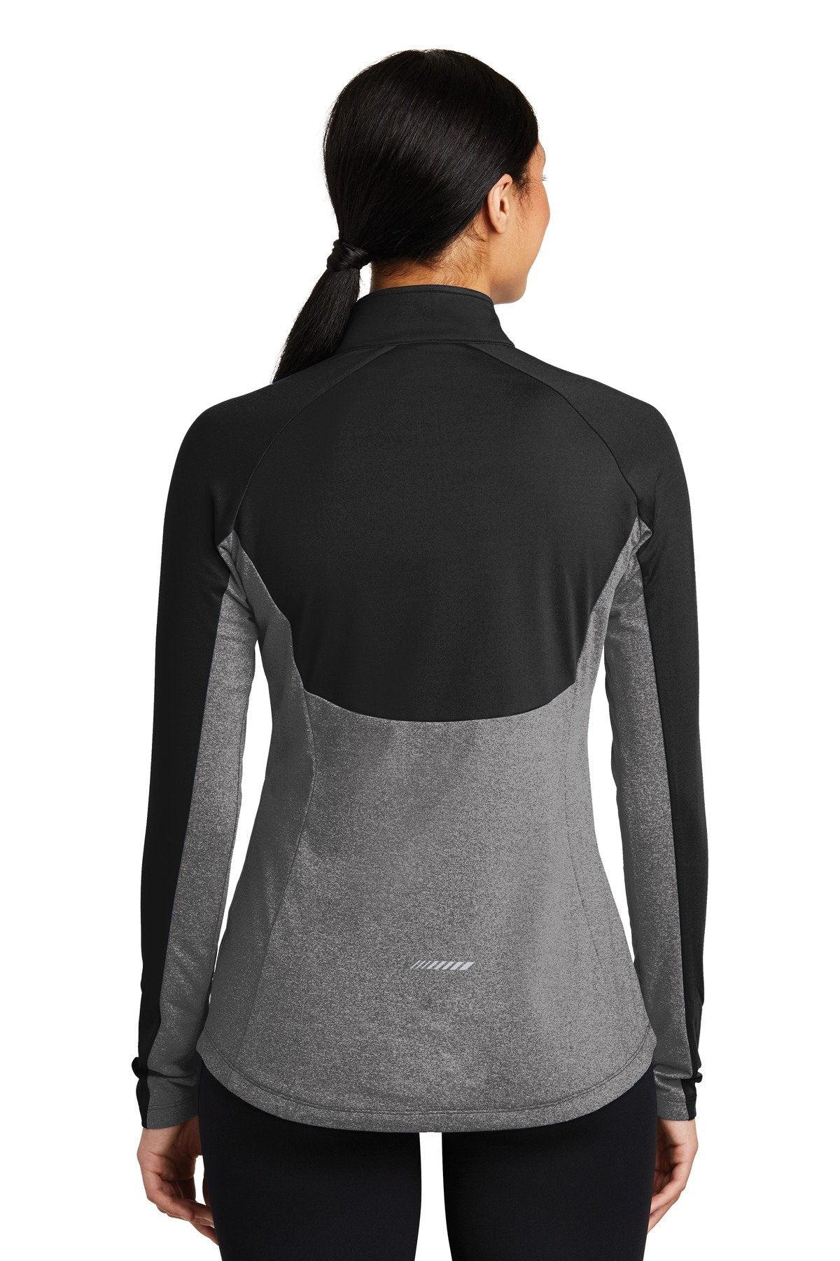 Sport-Tek Ladies Sport-Wick Stretch Contrast 1/2-Zip Pullover LST854 Black/ Charcoal Grey Heather